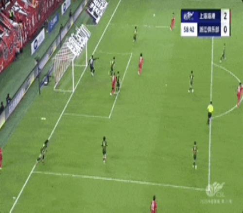 第71分钟,海港获得前场定位球机会,维塔尔操刀,他的射门画出一道美妙弧线直奔浙江队大门的右上死角,对方门将赵博鞭长莫及,这粒进球也让海港基本将三分收入囊中。