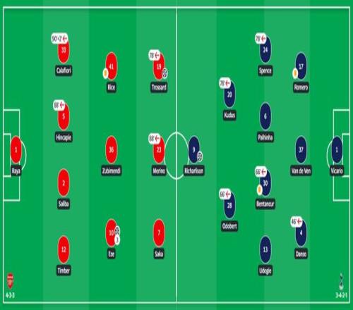 阿尔特塔本场的战术布置堪称大师手笔。面对主力中锋缺阵的情况,他果断变阵,将夏季新援埃泽置于进攻核心位置。
