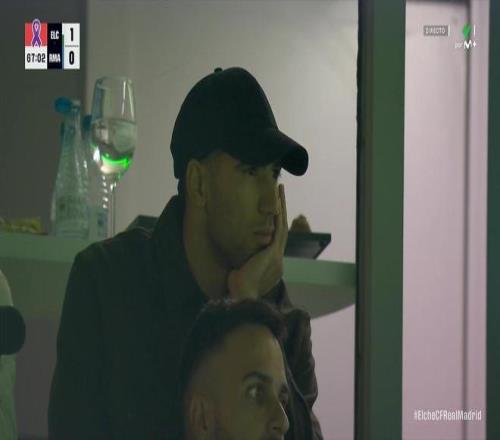 西甲第13轮,埃尔切主场对阵皇家马德里,比赛进行至第67分钟,转播镜头找到了在看台现场观战的阿什拉夫。