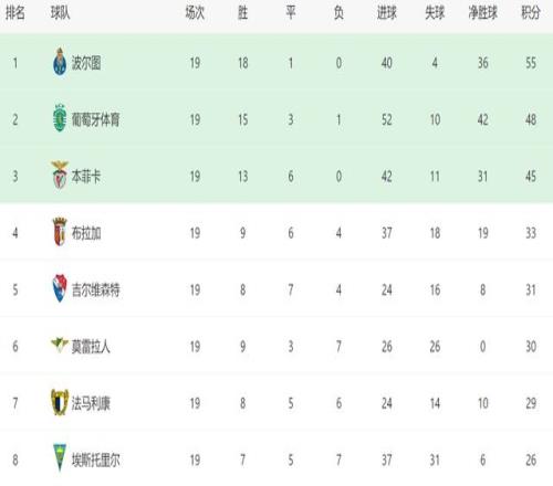 本场过后,波尔图在葡超已经实现11连胜,上一次他们在联赛中丢分,还是在主场战平本菲卡,这也是赛季至今,波尔图在葡超唯一一场没赢的比赛,其他18场全胜。几乎完美的发挥,让波尔图在积分榜上遥遥领先。如今排名第二的葡萄牙体育,落后波尔图7分,根本无力威胁领头羊的位置。