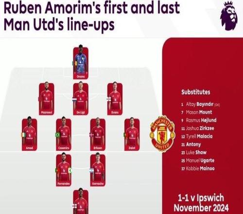 英超官方晒阿莫林执教曼联首秀及末战阵容:你注意到了什么