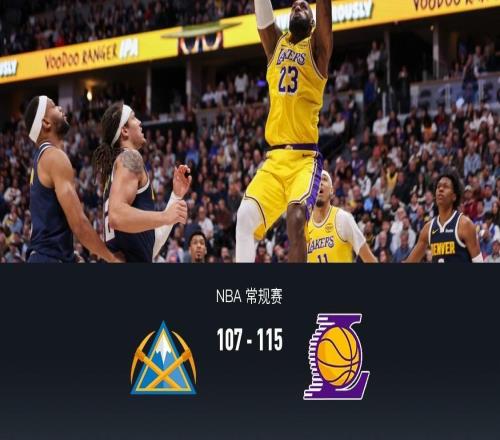 北京时间今日,在NBA常规赛中,洛杉矶湖人队在客场115-107击败了丹佛掘金队,取得了两连胜。本场比赛,湖人队球星勒布朗-詹姆斯出场34分25秒,15投8中得到了19分9篮板8助攻,三分球1中1