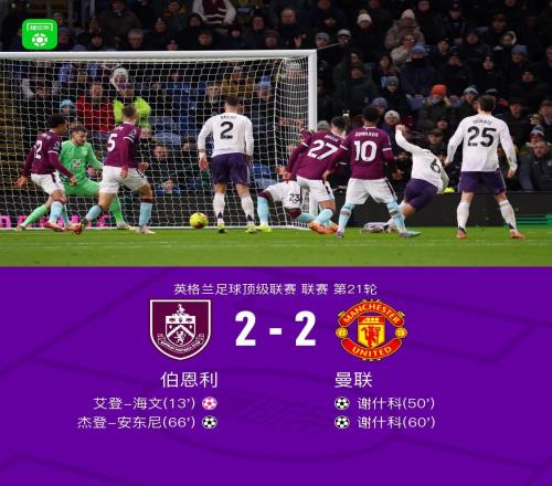 在北京时间1月8日结束的英超第21轮一场焦点战中,曼联在客场2-2战平积分榜倒数第2位的伯恩利。上半场,海文送乌龙帮助伯恩利领先。下半场,谢什科先后接B费和多古的助攻破门上演