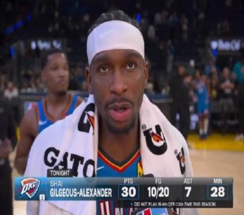 1月3日,雷霆131比94战胜勇士,本场比赛雷霆球员亚历山大全场20投10中,三分球5投3中,罚球7投7中,贡献30分1篮板7助攻!了解亚历山大的球迷都知道,7个罚球对亚历山大来说有点少了,这已经
